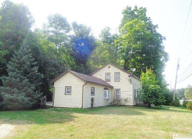 Creekside view right out the back door! This Fredonia home is outside the village, yet with village water service and a 5 minute drive into town! A first floor laundry, kitchen, full bath, pantry room and living room are on first floor, 3 bedrooms and a half bath are upstairs. Large deck overlooks the water! Vinyl siding, new steel roof coming in a few weeks for first floor of house. Very large 2 car garage with concrete floor plus a small outbuilding. Older farmhouse style home, can't beat the location,no village taxes! Fall asleep to the sound of the flowing creek! Water lovers, here is an affordable home! Long term 12 year tenant has moved! Owners are now able to get in and do some needed repairs and tidying up-no showings until February please!