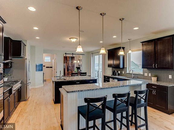 Elegance and modern design come together in this 2013 built, two story home! Entertainers dream with open concept gourmet kitchen, double island and GE Monogram stove. Formal dining room, double sided fireplace and office complete the main level! Refinished maple floors, white trim and reclaimed barnwood doors give this home a unique design! 4 beds, 3 baths and laundry on the upper level! Walkout basement (finished in 2019) includes a 5th bedroom w/ walk-in closet, and plenty of storage. The extras set this property apart: Elfa closet organizer systems. Nest thermostat, doorbell and camera. Top down/bottom up Bali blinds. Home sits on a dead end street at one of the highest elevation points in Chadwick Farms. Enjoy skyline and sunset views from the upstairs bedrooms and loft area. Outside, relax on the maintenance free deck or around the firepit. There are also berries, cherries and an apple tree in the back! Chadwick Park 2 blocks away! Lakeville south schools. Easy access to 35W!