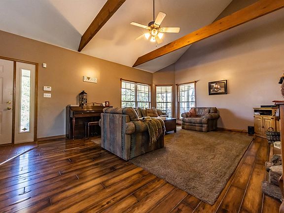 46 acre Rotational pasture, 3 ponds, white tail deer, quail, bobcat, and more... income producing grassland, w/ specialized custom built one of a kind home, a rare opportunity in Jackson County. This 7 bedroom home has oversized bedrooms ea w/ walk-in closets, large primary bedroom with soaker tub and walkout to west deck, full custom cabinetry in bathrooms/kitchen/libray/laundry, luxury laid tile floors in main living, large sun room w/ some of the most peaceful private views nestled into the trees alongside a creek. Over 5000 finished square feet include an Art room, Exercise room, separate office space w/ built in library wall, as well as custom walls in the 'kids' library nook' in east wing, oversized laundry w/built-in cubbies and vet center w/ sink & storage. Bright spaces through home w/ vaulted ceiling, rustic accents, walk-in pantry, pot filler in kitchen, Currently 3rd car is a ranch office w/ ability to convert back to 3rd car garage. Mjr add'n added in 2013, w/ new efficient mechanics, upgraded security systems, and more. Exterior hosts putting green, built in patio center, chicken/goat coop, basketball goal, gazebo-style oversized front porch & large garden spots. Home has been on Chamber Christmas tour in 2017. Offers a 1 yr Home Warranty HBW 2-10.
