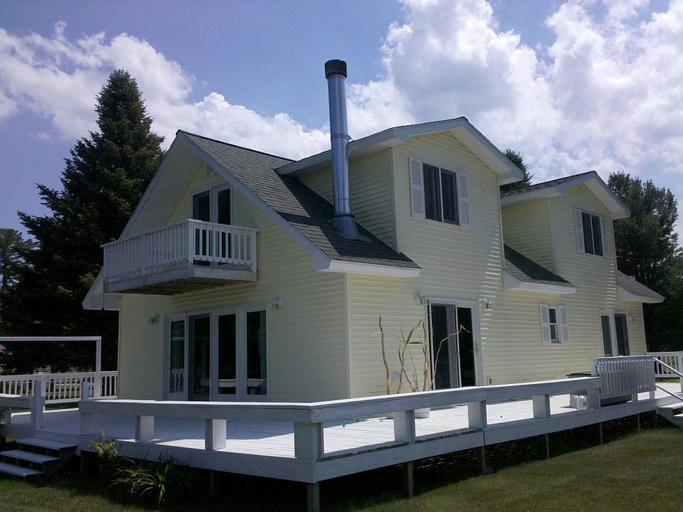This awesome home offers 3 spacious bedrooms, 2 up and 1 on the main floor, 2 baths, a wrap round deck, 2 gas fireplaces, a breezeway connecting the 2+ car garage to home, newer furnace & central air system, gorgeous view on Tower Pond. Home is completely fenced and gated. Ample storage with a balcony off the upstairs mater bedroom, glass door walls, a spacious great room concept. Home offers a contemporary, open design.
