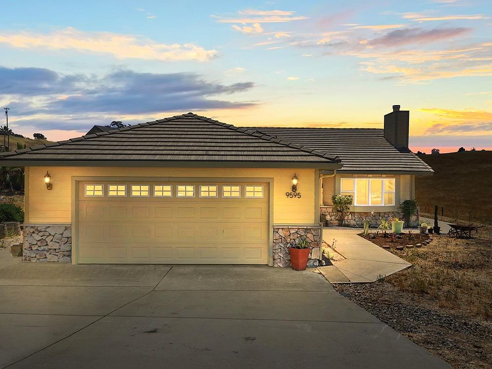 Welcome to 9595 Carrillo Way! This charming Rolling Hills home offers a serene lifestyle on an almost half-acre lot. With 3 bedrooms, 2 bathrooms, and 1,648 sqft of open living space, this property is designed for comfort and relaxation. The kitchen features elegant marble tile countertops, a center island, and new stainless steel appliances, making it a focal point for culinary enthusiasts. Enjoy the blend of tile and carpet flooring throughout the home, providing both style and comfort. The living room boasts a vaulted oak ceiling, adding character and warmth. A formal dining area with bay windows and outdoor access creates the perfect setting for gatherings. The master bedroom includes a large walk-in closet and outdoor access, offering a personal retreat. The laundry room provides ample cabinetry space for convenience. Additional features include a new water heater, solar tinted windows for heat reduction, newer solar panels, and low-maintenance landscaping. Outside, you'll revel in breathtaking sunsets and peaceful surroundings. The property's proximity to Lake McClure and Don Pedro provides endless outdoor recreation opportunities. Yosemite National Park is just 40 miles away. This home offers everything you could want and more. Don't miss the chance to make it yours!