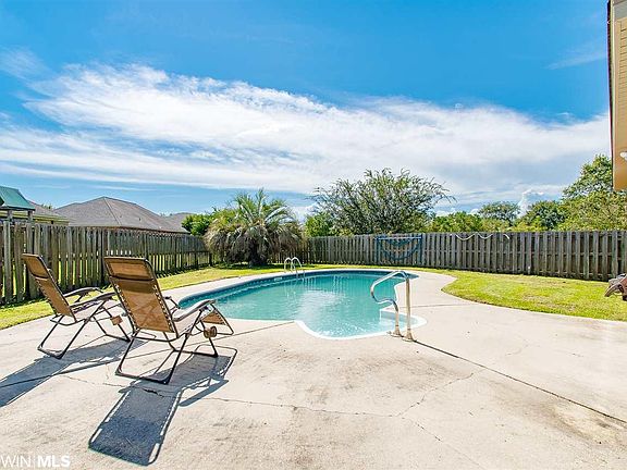 USDA ELIGIBLE HOME!!! This well maintained home is conveniently located in the cul-de-sac of Daphne's Chelcey Place. You'll love the new low maintenance landscaping and freshly painted door & shutters. Inside the entire home has scored concrete floors that have just been professionally sealed. Just off the foyer, you'll find an office or formal dining room separated by beautiful glass french doors leading into the living room with a gas fireplace and tray ceilings and plenty of large windows allow natural light and a great view of the pool. This custom built home boasts an abundance of cabinet space and granite countertops as well as updated appliances and a large adjacent breakfast area. This split floor plan has 2 bedrooms that share a bath and on the opposite side of the house the huge master suite with a large garden tub, walk-in closet, and vanity space. This pie shaped lot allows room in the backyard for a covered patio and chlorine pool while still leaving a little green space. Make your appointment today to see this home!