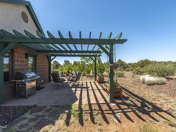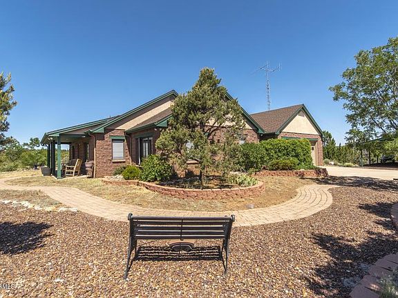 This one owner, pride of ownership, single level home enjoys a secluded 10 acre setting with an easy drive to town. Come see the stunning S.F Peaks and Mt Elden views bordered by National Forest on 2 sides with direct access to the AZ Trail, Walnut Canyon and Anderson Mesa. The covered entry opens to the great room with 180 degree panorama Pella windows that welcome great natural light. The upgrades in the kitchen make your meals a breeze so you can enjoy living. The bedrooms are spacious with 1 office ready. The master has a roomy walk in, large bath vanity and space for a king bed & dressers.. The solid wood doors and craftsman trim warm the entire home. An over sized 2 car attached. A 1200 sq ft garage/ shop /500 sq ft gym-studio have endless uses. Too many features to list here !