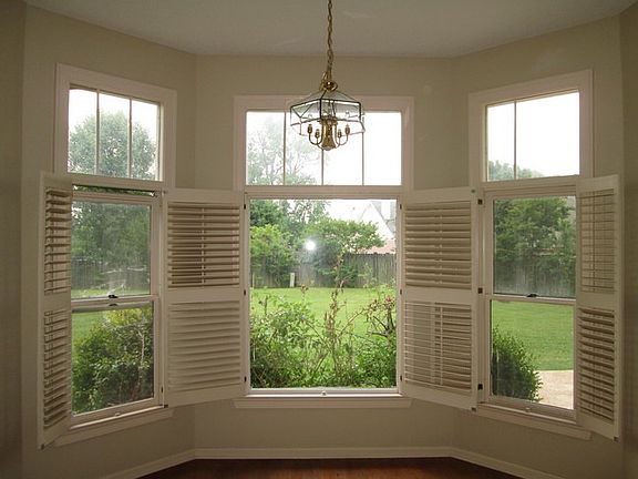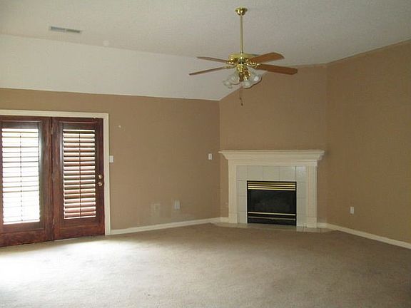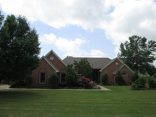 Nice home in golf community with beautiful landscaping and double arched iron front doors for a grand entry. This home offers an open great room and kitchen area. Great room is spacious and has vaulted ceiling with ceiling fan and gas fireplace. Kitchen has hardwood floors and includes breakfast area with beautiful bay windows for plenty of natural light and a view of the large landscaped backyard. Off the kitchen is a gorgeous dining room with an arched window. Both, breakfast area and dining r