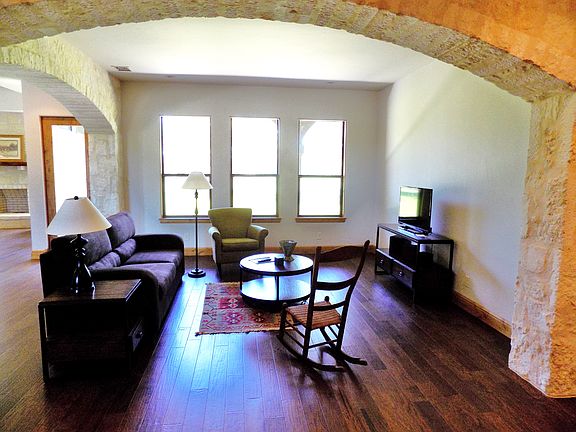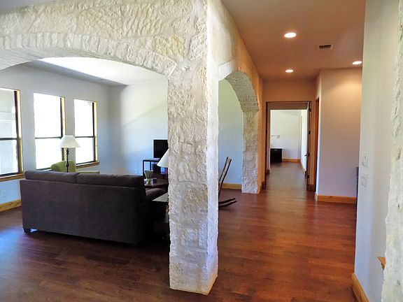 Come escape to your own retreat just outside of Boerne. 9.5 miles down Ranger Creek Road and quiet and secluded. This gorgeous rolling 50 acres has great tree cover with live oaks, post oaks, walnuts, Spanish oaks and more. The 3776 SF home is secluded off of the road for privacy and security. The windy road crosses an old style bridge made from an old train car. The road continues to meander until it opens up at the home. The lovely home has three bedrooms, three and 1/2 baths, private master suite with HUGE closet, two living areas, open living/kitchen/dining room, and more. The recently remodeled kitchen has granite counter tops, subzero frig and all new appliances. A Wolf induction stove top, which never gets hot to the touch and provides a perfect cooking area for the most sophisticated cook. Wood floors throughout the home allow for easy cleaning and allergy free with no carpet. The home is Southwestern style with tile roof and vigas and latigas that add that New Mexico flare to the ceiling on the front porch. The master suite has its own private office and laundry area. The den area across from the front door is prewired for surround sound. It has volume controls and speakers set for sound in and out. Also office area by the back bedrooms is wired for a flat screen above the desk to provide another den/gaming room if needed. The property is entirely fenced. There is a large barn with working pens and several large water storage tanks. This is a gorgeous estate just minutes out of Boerne.