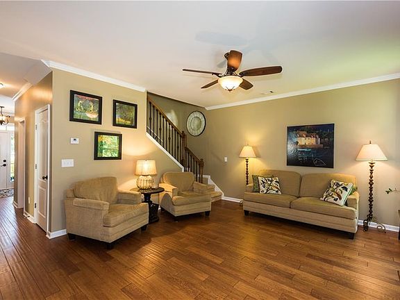 Lovely 4BR/3BA Craftsman 2-story Home. Beautiful Hardwood Floors Throughout Main Level. Granite Kitchen w/Stainless Steel Appliances, Gleaming Wood Cabinets. Built-ins include Charming Window Seat w/storage/Media Cabinet Above Fireplace/Book Shelves in 2nd Bedroom. Main Level has Guest Bedroom/Den or Office w/Adjoining Bath. Upstairs Lg Elegant Master Suite/Jetted Garden Tub/Tiled Baths/Plantation Shutters. Nice Backyard w/Patio & Inviting Front Porch. Just minutes from I-85/New Braselton Medical Center/One of Braselton's Most Popular Swim/Tennis Neighborhood.