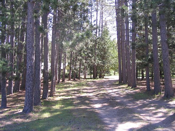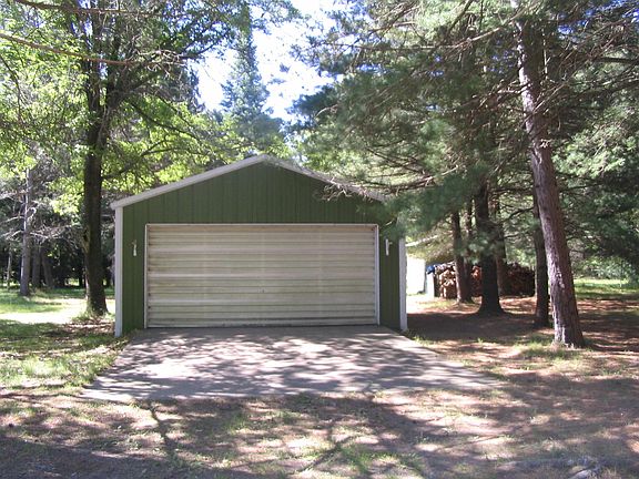 This 2 bedroom - 2 bath cabin sits on 7 acres of towering red pines with 2 pole barns, a nice fireplace, summer screen room all on a county maintained road.