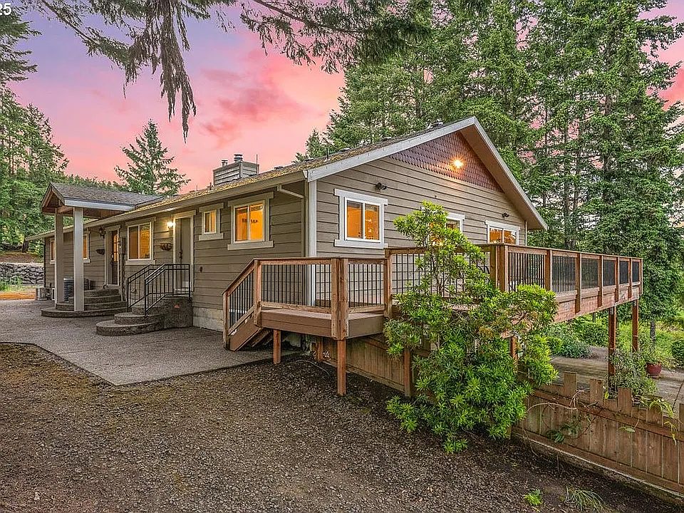 Tucked into the hills of Oregon wine country, this ~5,000 sq ft private estate offers unmatched seclusion, sweeping territorial views, and luxurious flexibility backed on three sides by vineyard-owned land for ultimate privacy. Situated just minutes from Hagg Lake, this 1.5-acre retreat blends natural beauty with thoughtful amenities, perfect for extended households, executive renters, or those seeking a peaceful, high-end living experience. The main home features 4,154 sq ft of living space, including a light-filled upper level with expansive windows and three view-facing decks. Updated throughout with new flooring, dual kitchens, and spa-like tile bathrooms with walk-in showers, the home offers plenty of room for entertaining or multiple living setups. The daylight basement includes its own private entrance, kitchen, and mini-split HVAC ideal for in-laws, guests, or as a separate living area. Enjoy outdoor features like a level backyard, natural pond with a seasonal creek, paved lower driveway access, and a massive boulder retaining wall for added landscaping appeal. A major utility upgrade includes a dedicated transformer and ready-to-use connections for an additional structure. If you're looking for a quiet, private, and spacious rental surrounded by nature this is a rare opportunity. *Detached Guest house on property is not included in the home rental Renter is responsible for electricity. All other utilities included in rent.