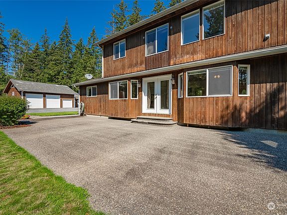 A rare find so close to town and the US/CAN border, located directly next to hundreds of acres of protected forest land that insures continued privacy. 2.46 acres, over 2700 Sq Ft of living space. Home has the Northwest Contemporary "feel". 4 bedrooms with 4 full baths, 3 of 4 rooms are suites. Comfortable Living room, large bonus room upstairs with Vaulted ceiling, both overlooking the beautiful wooded areas, two pellet stoves and 2 mini split heat pumps keep you warm in winter and cool in summer, freshly painted inside, newer appliances. High speed internet. Large shop is insulated, high bay doors, sheet rocked, bathroom, separate septic & electric meter, all set up to finish off the accessory dwelling unit. Many more upgrades.