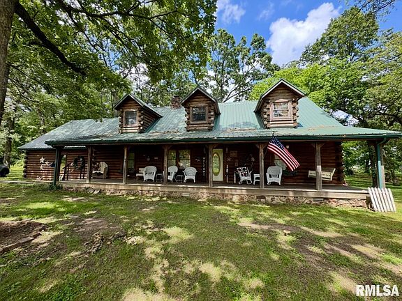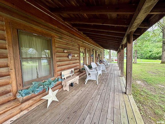 This beautiful home is back on the market due to no fault of the seller. It was previously under contract, passed USDA loan requirements and appraised for over list price! A great opportunity for a new buyer to move forward with confidence. Welcome to your very own log cabin retreat, just minutes from beautiful Rend Lake. Nestled on a peaceful corner lot with over 3 acres, this 4-bedroom, 2-bathroom home blends rustic charm with comfortable living. Inside, you'll find soaring cathedral ceilings and a spacious loft that adds both character and flexibility. Enjoy the outdoors from the expansive covered porches in the front and back, surrounded by large, mature trees that offer shade and privacy. The property also features a fully stocked pond with its own dock, perfect for fishing, relaxing, or simply enjoying the quiet beauty of the land. If you're looking for a home that offers space, serenity, and timeless charm, this log cabin is ready to welcome you.