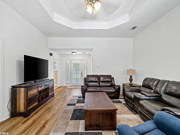 Pristinely kept, all brick, 3/2 in convenient Fairhope location. Airy and open with trey ceilings in the living room and primary bedroom. The primary bedroom features an additional space for a sitting area or desk, en suite bath has a private water closet, separate shower and garden tub. Split floor plan with 2 additional bedrooms that share a hall bath. So many upgrades to list, the house was completely replumbed in 2019, new HVAC in 2020, new flooring in 2022 including luxury vinyl plank in the main areas and fresh carpet in the bedrooms, plantation shutters throughout, new grinder pump, gutters added to the entire exterior, new countertops and backsplash in the kitchen and new countertops and shower stalls in both bathrooms. The refrigerator is new and conveys with the home. Oversized utility room with plenty of storage. A new screened porch and patio were added to the back of the home, in the garage are windows that can be attached to transform it into a comfortable sunroom during the cooler months. You need to see this one for yourself to enjoy all that it has to offer! All information deemed reliable but not guaranteed. All pertinent information to be verified by buyer or buyer's agent.