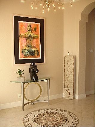 A fabulous expanded great room home awaits! This impeccably maintained home in Bellaggio is ready for a new owner! Tile on the diagonal thru all but master and guest room... This home is a gem... Perched at the end of a cul-de-sac, there is a very elongated driveway... There are no side neighbors and no rear neighbors, unless you consider the birds that visit the lake neighbors... If you like privacy, this is a perfect choice for you... Double glass etched doors welcome your arrival... A roomy foyer sets the stage for a great flow of space... The office is extended to provide more elbow room... There are lovely leaded glass doors to provide peace and quiet while you are at your desk... The kitchen is a delight with lots of 42'' cabinets and beautiful dark granite counters...