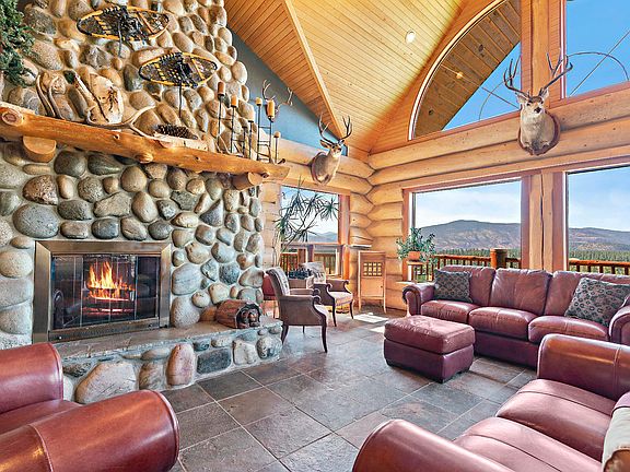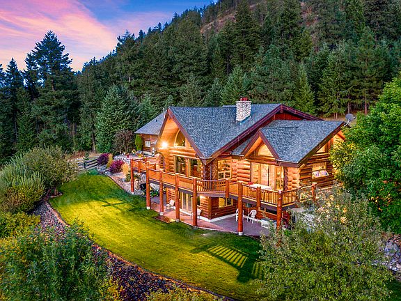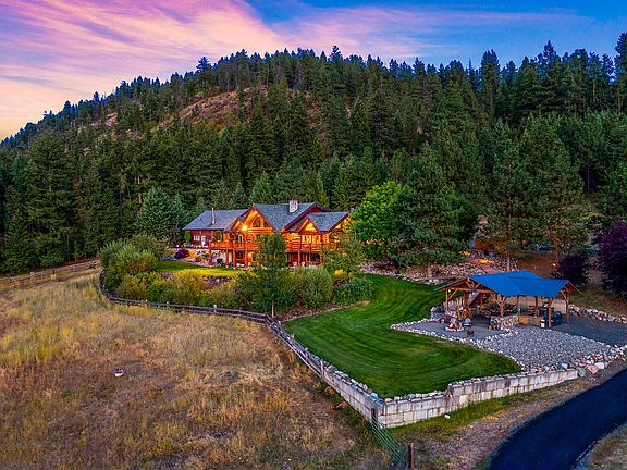 Outstanding custom built log home sitting on over 12 acres! This stunning home has incredible details from floor to ceiling. The gorgeous outdoor pavilion complete with massive water feature has hosted multiple weddings and events. Enjoy the view of the Canadian mountains, Lake Roosevelt or horses running through the pasture all from your wrap around porch or the comfort of your hot tub. Fabulous kitchen with eating bar ,3 bedrooms 3 baths plus a loft and lots of finished living space in the basement. Property includes custom built smoke house, 3 separate guest apartments , plus a separate ground keepers apartment, horse stalls, chicken coop, plentiful garden, orchard, waterfall into a large Koi pond and so much more. Come see your new home today!