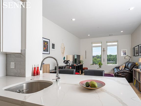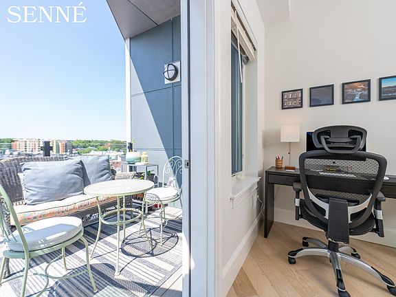 Unit 303 at The Brook is a spacious one-bedroom, 1-bathroom apartment with a private balcony. Oversized windows let in natural light that spreads throughout the open concept floor plan and warms the Sawyer Mason wide plank wood flooring. The quartz countertops and the GE Cafe appliance package in the kitchen will please any home chef. A multi-functional kitchen island connects the living and dining area for storage and flexibility. The bedroom features an expansive closet with built-in shelving. In the bathroom, a luxurious shower-tub combo is accentuated with radiant, glossy tiling. All residents of The Brook have access to the building's amenities, including a dog wash, bike storage, available garage parking, and a show-stopping roof deck with amazing sunrise/sunset views. Just minutes from the Alewife MBTA station, Route 2, and all that Greater Boston has to offer. Matterport & photos attached of staged model unit #201 in building. See unit floor plan for size and layout of specific unit.