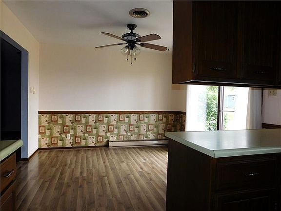 A spacious two bedroom, two car garage with one and one half bath. Large living room with newer LVT flooring. Nice sized kitchen with lots of cupboard and countertop space. An equally nice dining space just off the living room and attached to the kitchen, leading out to a deck and backyard. Storage shed with cement floor & electricity stays with property. Roof and siding were new in 2011, all electric home in great condition!