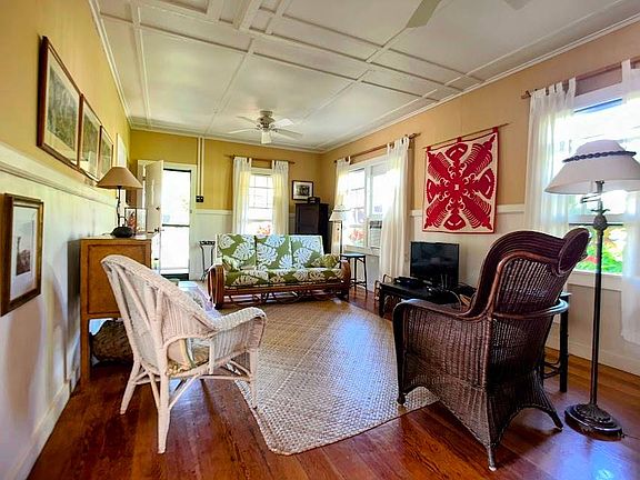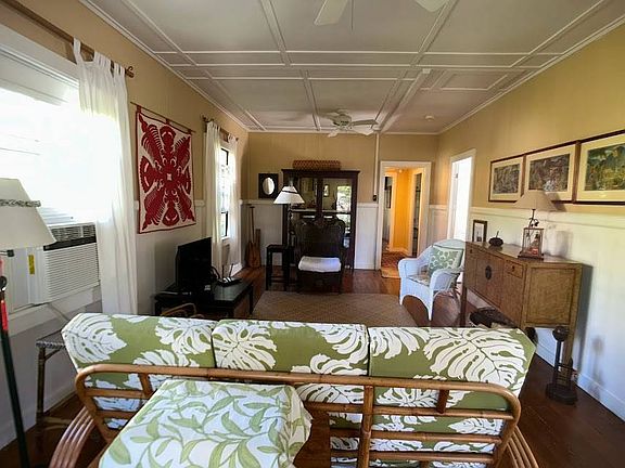 Come on in, you're going to feel right at home in this cozy plantation home that has been lovingly maintained. Located just 5 miles from Punalu'u Black Sand Beach, this Pahala home has exactly what you've been looking for. Living room is bright and airy with high ceilings and original wood floors throughout that add to the charm of this home. Step out onto this darling front lanai to relax and enjoy this location and the lovely plants in the yard. Large vintage style bathroom with pedestal sink and clawfoot tub as well as shelf and storage space. Bedrooms are bright with closets and ceiling fans. There is a back bonus room with its own lanai as well as a courtyard that connects to an outer wash/bath house. Fully fenced with gated entry to carport. Updated wiring and recently installed on demand hot water heater. Landscape plants include tangerine, avocado, orange, mamaki and lemongrass. Don't miss out on this one.