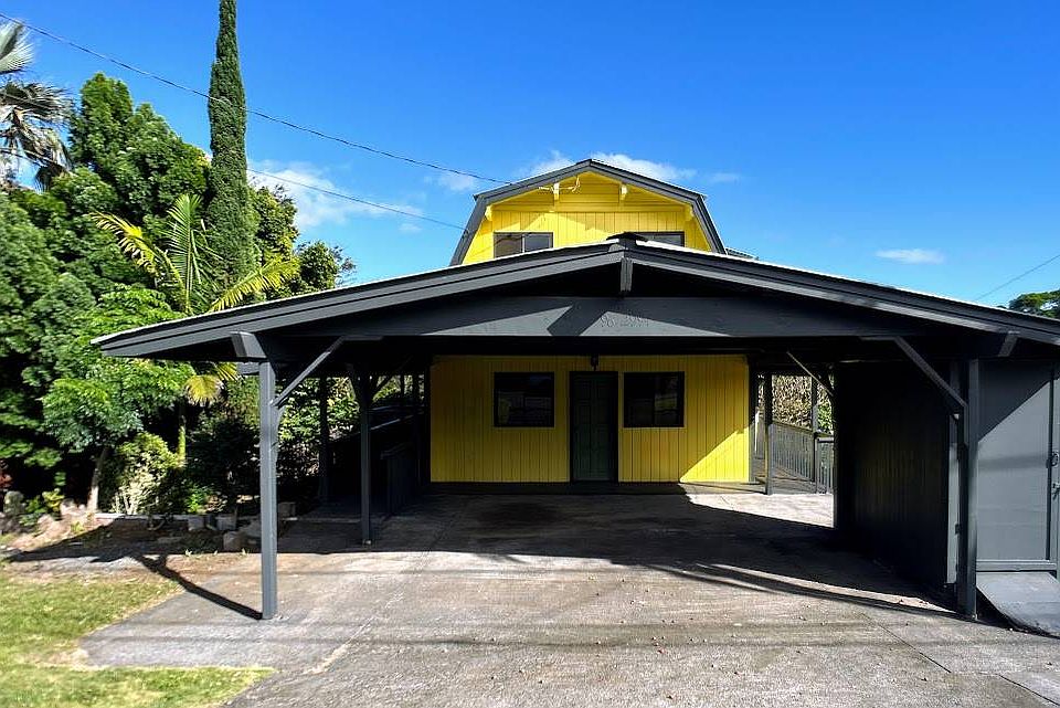Nestled within the quaint town of Pahala you'll find this charming Dutch Colonial style home that backs to open space with gorgeous morning skies. This large home has two separate entrances, lending to potential rental income or extra room for your ohana. The upper level is two story 3 bed/1.5bath, entering in to a foyer or possible office area and opening up to a large kitchen and living room with enclosed lanai. Up the stairs are the bedrooms, the primary bedroom with great views and plenty of space.