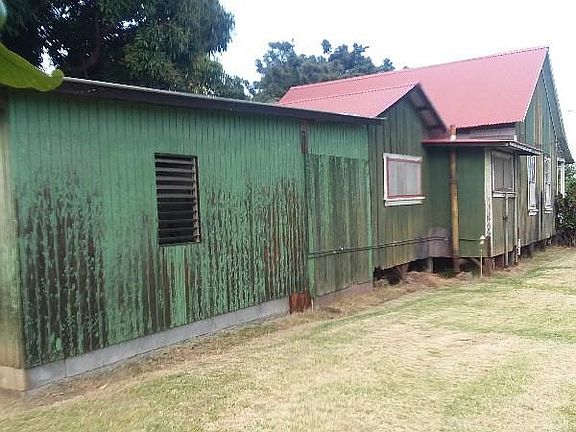 HERE IS A DARLING FIXER UPPER WITH ALL THE PLANTATION CHARM. HIGH CEILINGS, VINTAGE WINDOWS, CLAW FOOT BATH TUB, GALVANIZED SHOWER STALL, CONCRETE WASH TUB AND ORIGINAL ANTIQUE LIGHT SWITCHES. LARGE LIVING ROOM WITH CARPETED FLOORING AND SINGLE WALLS. CUTE BATHROOM WITH THE CLAW FOOT BATH TUB FOR SOAKING AND A NICE BASIN. LARGE KITCHEN WITH A GAS STOVE, NEW REFRIGERATOR AND BUILT IN SHELVING UNIT FOR ALL YOUR GROCERIES. LAUNDRY ROOM AT THE BACK OF THE HOME WITH A FULL SHOWER, CONCRETE WASH TUB AND A WASHER. A HUGE BONUS ROOM FOR ENTERTAINING OR A WORKSHOP FOR THE HANDY MAN. CUTE DECK AT THE FRONT OF THE HOME WITH PLENTY OF SPACE FOR THE PICNIC TABLE. LARGE YARD ADORNED WITH NATIVE HAWAIIAN PLANTS & FLOWERS. FRUIT TREES TO INCLUDE GUAVAS, MANGO, POMEGRANATE AND BANANAS. THERE IS A NEW ROOF ON THE HOUSE AND CHAIN LINK FENCING AT THE FRONT OF THE PROPERTY WITH A GATE FOR PRIVACY. HOME NEEDS SOME REPAIRS BUT IT FEELS LIKE THE PAHALA HILTON.