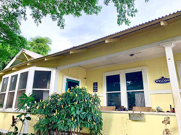 This Former Plantation Manager's home has a lot of charm to it that you don't see anymore, it does needs a lot of love to bring it back to it's glory but the potential is there. This 3 bedroom and 2 bath home with 1580 sqft interior has kept a lot of the original ambiance that you will feel as you walk around the property. The spacious, eat-in-kitchen has a lot of its original vintage character. There's plenty of storage and a dining bar plus room enough for a cozy dining nook. In the kitchen you'll find the original classic china cabinet too. A formal dining room is just around the kitchen corner, with plenty of space for a dining table large enough to seat ten. The dining room is open to the spacious living room with it's panoramic 5-section bay window. Floors throughout the house are polished wood, except for the ceramic tiled bathrooms and vinyl-floored kitchen. The primary bedroom has an ensuite with a walk-in shower and it's own separate entrance to the backyard. Stepping outside, enjoy a vast grassy and landscaped 15,342 square foot lot with a detached 2-car carport and a studio guest house with a full bathroom, and its own kitchen.