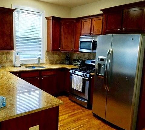 PERFECT RENTAL IF YOU ARE REMODELING YOUR HOME! Built in 2008, features Hardwood floors THROUGHOUT,features large rooms, open contemporary floor plan, Living Room, Dining Room, Gourmet Kitchen with stainless steel appliances, granite counters, Home Office, 3 Bedrooms, 2.5 Baths including beautiful Master Bedroom Suite. Finished Basement, attached garage, nice yard and patio. Gorgeous hardwood floors, central air and security system NO SMOKING IN UNIT, NO PETS, lease application and credit report and score required, interview, no smoking, no pets DUE AT LEASE SIGNING 1ST MONTH RENT, 1.5 MONTHS SECURITY, 1 MONTH REALTOR FEE
