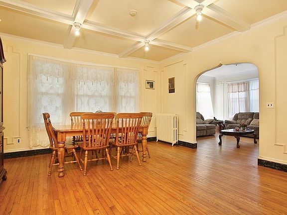 Set in a much desired Roxbury neighborhood on a 9039 sq ft lot, this majestic 3-family has architectural charm and detail of a bygone era. The large rooms are distinguished by handsome crown moldings, high ceilings, oak flooring, and gracious arches. Top unit, with 2420 sq ft offers a front-enclosed porch, a welcoming foyer, an oversized dining room, with a beamed ceiling, and a living room brightened by 6 windows. The eat-in kitchen has a butler's pantry. There are 3 spacious bedrooms, numerous closets, and 2 full bathrooms. 2nd unit, located on the 1st floor, has 1641 sq ft of living space with kitchen, dining room, sun-filled living room, and 3 generously-sized bedrooms. 3rd unit is a charming one-bedroom unit with kitchen, living room, and bedroom. This property also has a full unfinished attic, separate updated system, full unfinished basement with room for storage, lovely front/backyard areas, detached 2-car garage. Near Franklin Park and Golf Course, shops, public transportation