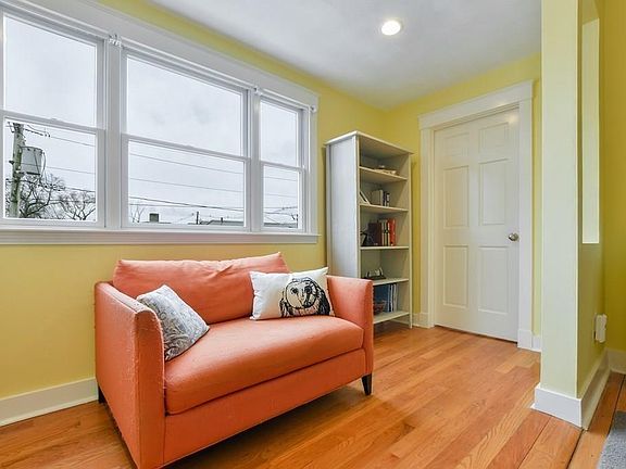 Beautiful upper duplex with 15'x16' deck and exclusive driveway for 2 cars. A private entry leads to the open plan living and dining room, kitchen with white cabinets and stone countertops. A home office and half bath complete the first floor. On the top floor, is the primary bedroom and 2nd bedroom, each with walk-in closet, and a tiled bath with skylight. Other features include: two car parking, gas heating, two mini-split a/c systems, basement storage and newer Hardie Plank exterior siding in 2012. Conveniently located to the community bike path with quick access to Davis Square, trendy restaurants, Magoun Square and the planned Lowell Street Green Line T station.