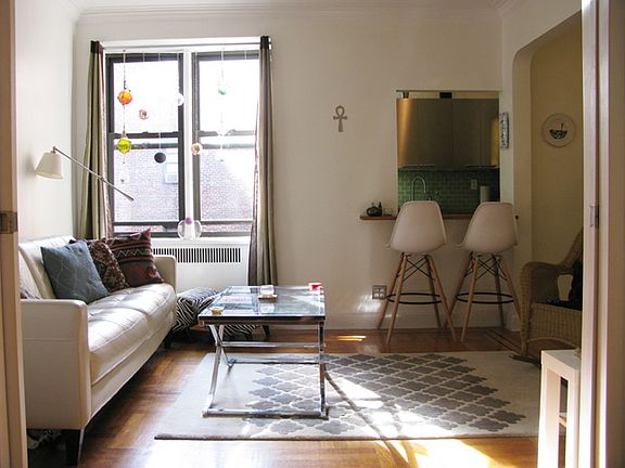 DESIGN WITHIN REACH! Wait until you see the creative solutions of this dreamy 1BR/1ba home where every detail has been carefully thought of. The modern upgrades are a beautiful match to the prewar details, creating a simply irresistible combination that is up for grabs now! The entrance with two large closets opens to a sizable (dining) foyer on the right and a large living room on the left--in fact, large enough to have been divided into two functional areas to create a separate space (if needed) ideal for a home office, nursery, or a guest room. A pass-through adjoins the kitchen to the living areas with a bar counter perfect for all entertainers. The kitchen with white and stainless cabinetry, all stainless appliances, butcher-block counters & serene green glass-tile backsplash is ingeniously renovated despite its compact size, spilling into the hallway where the fridge and more cabinetry have been sunk in what used to be a closet--but don't worry, there is still plenty of storage available for all your needs! The extra quiet bedroom is nicely separated for maximum privacy, and an additional closet as well as the all-white, beautifully zen bathroom are conveniently located right outside the bedroom. The deco arches greatly contribute to the appeal of this attractive apartment, and the carefully maintained hardwood floors with various patterns are decorated by a classic double walnut trimming. This quintessential deco building with an inviting lobby is located on a tree-lined block just steps from transportation (A Express) and Ft. Tryon Park, and two blocks south of the Dyckman Street shopping strip with a variety of amenities, including restaurants, stores, banks, etc., making this an all-around convenient location. But don't let the convenience end there: with such a perfectly appointed home you can skip all the renovation stress and after a long day's work simply come to your new uptown home where relaxation awaits...!