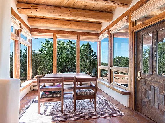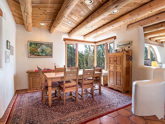 Light filled rooms bring the outside into this charming 3,075 sq. ft. Arroyo Hondo home, located on 4.2 very private acres. Built in 1990 in the Santa Fe tradition, with gracious, curved wall accents and many flexible living spaces and conversation areas. The ample master suite is on the upper level, which opens to a large south-facing view deck. This warm and bright home is uniquely inviting.