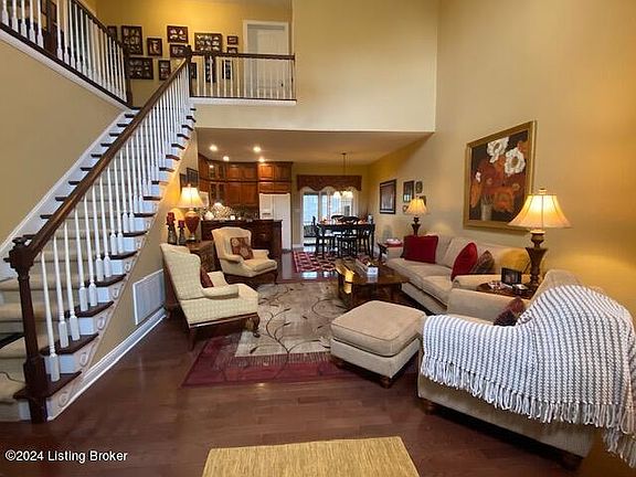 Luxury Living in highly desirable Maywood Golf Course community awaits you with this beautiful 3BR 2.5BA brick patio home with two car attached garage. Desirable open concept floor plan greets you as you enter into the Living Room with hardwood floors & smooth ceilings that flows into the Eat in Kitchen with plenty of nice cabinetry, convenient breakfast bar & appliances remain. Spacious carpeted Sunroom overlooks the 4th hole & has separate heat & air unit. Sought after first floor carpeted primary suite with crown molding. Tiled Primary Bath offers jacuzzi tub & separate shower & walk in closet. Nice Laundry Room & half Bath completes the main level of the home. Venture upstairs where you will find a great loft area perfect for an additional living area along with two carpeted bedrooms & Jack & Jill Bath. Plenty of room for everyone in this spacious home. Located near all the amenities of historic Bardstown including shopping, schools & restaurants & only minutes from the downtown area. Don't Delay! Let's Go Take a look today!
