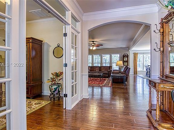 Stunning Dunwoody Way Model w/extra Golf Cart Garage has 3 Bed., 3 Full Baths, Extra large Driveway, Office/Den/4th Bed. Gourmet Kitchen, Granite, Amazing Island over 10 ft. long, stainless appliances, Pantry, Glass Backsplash. Open Floor Plan w/Crown Molding throughout, hand scraped hardwood flooring in Kitchen, Office, Dining, Great Room. New A/C 2020. Spacious Main Bed. w/wooded backyard view, double sinks in bath, separate tub and shower, huge closet. Tiled Screened Porch w/Patio, fenced-In backyard. Baynard Park is 24/7 Gated, has Community Pool, Tennis, Pickle-ball, Fitness Center, Screened pavilion, Fire-Pit, lots of great activities.