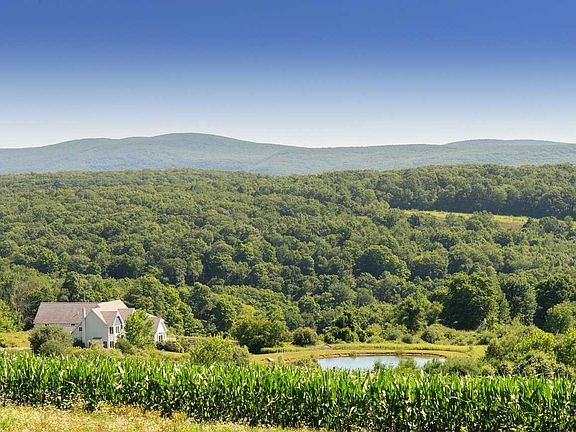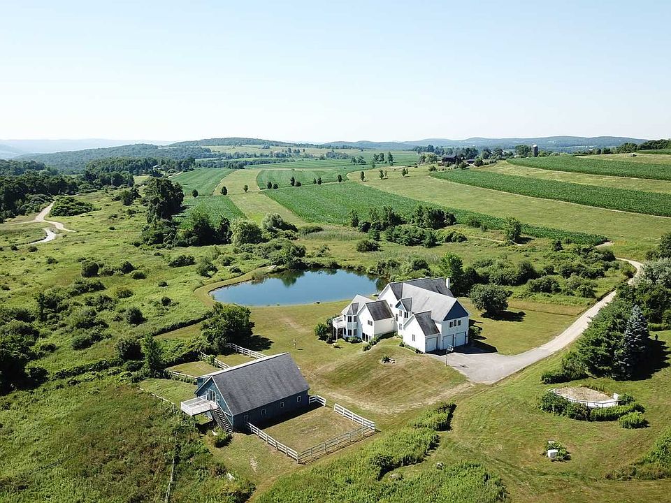 Country living on 39 acres with expansive SE views of the Taconic Range from Winchell Mountain. Spacious home with 5 large bedrooms and 5 bathrooms. The chef's kitchen is the center of this home and has stainless steel appliances, an island with stools, and casual dining space. Generous Family, Dining, and Formal living areas, all with sliding doors leading you to to the glorious views of the pond and surrounding hillside. Guest bedroom with 2 full bathrooms, laundry, and mudroom complete this first level of the home. Upstairs you'll find an oversized game room, multiple storage closets, and extra-large office with additional storage closet and space for 2 large desks two additional bedrooms, and a full bath. 48 x 36 Barn has 6 stalls, turnouts, tack room, hay storage, and a studio apartment.