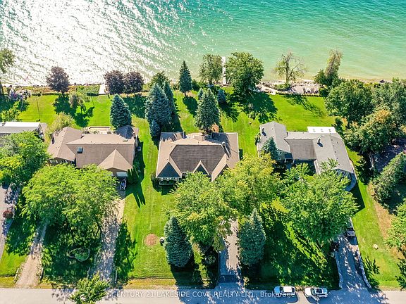 Lake Simcoe 5,000 Sq. Ft. Waterfront Bungalow with Breathtaking Southern Views. Welcome to this stunning waterfront bungalow on the shores of Lake Simcoe, offering 100 feet of clean, clear shoreline. This beautifully maintained home features cathedral ceilings and an open-concept layout that seamlessly blends the gourmet kitchen, dining, and living areas perfect for both relaxed family living and stylish entertaining. The kitchen is a chef's dream, complete with granite countertops and a walkout to a spacious stone patio, ideal for family gatherings. The main floor includes 2 generously sized bedrooms, 3 bathrooms, convenient main floor laundry, and inside access from the attached garage. The fully finished lower level offers a spacious rec room with walkout access to the backyard and hot tub, your private retreat for relaxation. This level also includes a large bedroom, a 3-piece bathroom, ample storage, and a versatile bonus room that can serve as a media room, games room, or an additional bedroom for extended guests. Curb appeal abounds with manicured lawns, established low-maintenance gardens, and an inviting presence. Enjoy ultimate privacy, stunning sunsets, and a truly serene lakeside lifestyle. Don't miss this rare opportunity to own a piece of paradise on Lake Simcoe. Bayshore Village is a unique waterfront community located on the eastern shores of Lake Simcoe. Membership includes access to amenities such as golf, saltwater pool, pickle ball and tennis courts, cards, socials and more. ($1,100/2025) BVA & Bell Fibre Member