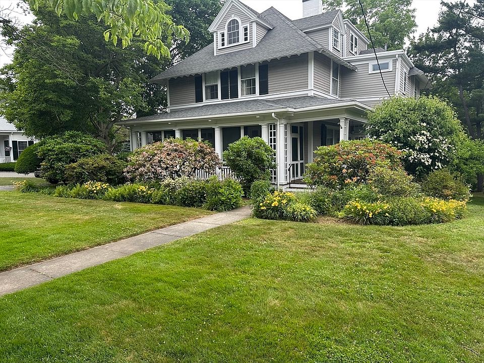 Beach Bluff location surrounded by large lots, mature trees and open space. This gracious home offers 5 bedrooms. 3.5 updated baths, open kitchen floor plan and a fabulous wraparound screened in porch. 3 of the bedrooms are ensuite. (one with a walk-in tub with spa features on 1st level.) 10' ceilings on 1st level combine with period cabinetry, hardwoods, moldings and charm. Updated gas heat and hot water. 2 fireplaces are decorative. Level front and rear yards for outdoor relaxation. A 2 car detached garage w/ electronic door. Full basement and finished 3rd level for an office or additional storage. This is an 8-month unfurnished rental through April 30, 2026, .Short distance to sandy Preston and Phillips Beaches, Vinnin Sq. shopping and train.