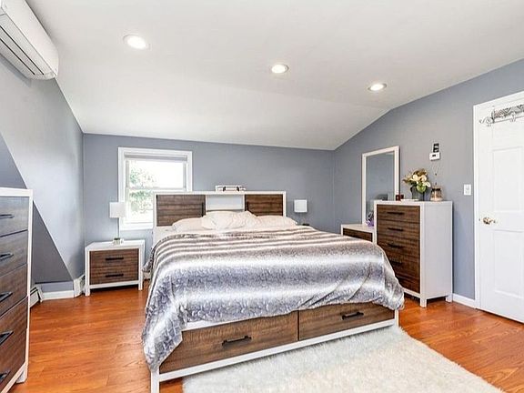 Bright, Rear-Dormered Cape. Shows Great. 2 Full Bathrooms, Ceiling Fans, Finished Basement with separate entrance, PVC Fenced Yard with Patio. Fujitsu Climate Units on Each Floor. Updated Washer and Dryer. Eave Storage. Alarm System with Cameras. Updated Electric w/Additional Panel in Garage. Attached 1 Car Auto-Open Garage. 3 Year Old Pavers. 2 Storage Sheds. More!