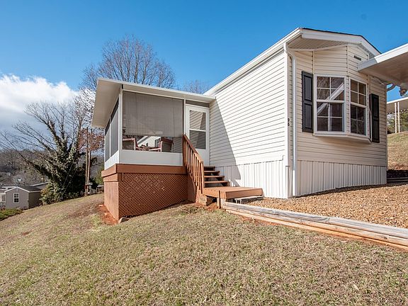 The mountains are calling! Come live year round or use it for your summer/fall home. Cute & Clean as a pin with a setting you will get huge mountain views right in town. 3 Bedroom 2 Bath Clayton Singlewide Home. Large Screened in front porch to enjoy the mountain views and the sunsets. Split bedroom floor plan w/ Primary having its own round soaking tub & has a shower, walk in closet. 2 other bedrooms on the other side with a tub/shower unit. Back door leads to the mudroom/laundry room into the eat in kitchen with plenty of cabinets & counter space. Mountanin views out the kitchen window & Cozy living room with gas log fireplace convenient if the power ever goes out at least you have heat. Central Heat & Air heat pump. Attached carport and a storage shed. 60+ park and Lot rent covers water, sewer, paved road maintenance and lawn mowing. Very close to shopping, dining and entertainment. The Little Tennessee Greenway is just down the road. Comes partially furnished and at a price you can afford! Mobile only, does not include land. No dogs allowed but you can have a cat.