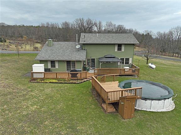 This home is a total cream puff! Located just 10 minutes to Ithaca College and Cornell, this 3 bedroom 2.5 baths features a large formal living room as well as a huge family room with wood burning fireplace. large 2 car attached dry walled garage. New kitchen with solid surface counter tops and stainless appliances. New windows, flooring, and Fresh carpet and paint throughout as of last year. New Central air added last year as well as the duct work cleaned. Water Softener is owned. Beautiful views of the mountains from every direction. Above ground pool, large deck and an additional shed for storage. This is seriously like a new home!