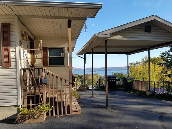 Wide open beautiful views await you in this charming fully furnished 3 bedroom , 3 bath home with a double lot and a spacious detached 2 car garage and a single stall for your RV/Boat gives perfect storage for lake toys and more. Sit out on your over-sized 47 x 14 covered deck and enjoy the amazing views of Table Rock Lake from one of the highest points in Twin Island Heights! Great weekender with separate living quarters in the lower level. Paved driveways and well maintained. No fixing up required! Just a block away from public access to get on the lake easily, minutes from Big Cedar and Branson. Where else can you get this view for the price? Come and see it, easy to show.
