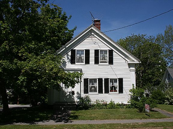 Cozy, well-insulated Greek Revival Cape in Belfast's finest neighborhood. 3 BR/3BA with main floor den/office; main bath has beautiful claw-foot tub and separate shower. Substantially renovated to retain character and is very livable. Two-car detached garage with kick-out and double drive. Dry walk-out basement, low hours on furnace, and fully lined chimneys with functional fireplace and wood stove hook-up. Separate mudroom, laundry, and pantry. Covered porch overlooking beautifully landscaped corner lot with raised bed gardens plus berries and fruit trees. Walk to town and harbor. Ideal for young family or active retired couple.