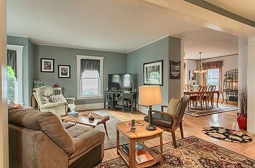 Rare opportunity for a quality colonial style home with 2-story barn and garage. This home is rich in history and shows pride of ownership throughout. Tasteful renovations were completed in 2002 and stayed true to the integrity of the home. Barn is original to the house and has it's own 60 amp electrical service, and walk-up second floor,and space for 4+- vehicles. Updated eat-in kitchen offers cork flooring, lots of natural light, beautiful cabinets, Silestone counter. Separate laundry room off the kitchen with secondary staircase from kitchen to upper living area. Dining room has beautiful original woodwork and stunning built-ins. This home rich in natural light offers option for a first floor bedroom and has closets in every room except living room. Master Bedroom has dual closets. High ceilings, lovely floor plan. A must see to appreciate all this home has to offer.