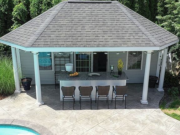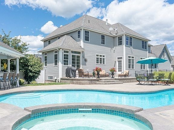 Stunning custom built one owner home situated on the largest lot of the cul-de-sac with gorgeous blue stone features.. A layout designed for entertaining, w/panoramic outdoor living space both unique & highly desirable in its expansive size & privacy. A stamped concrete patio surrounds a saltwater gunite pool, pool house & bar. The 3 car garage abuts a basketball court which is convertible for winter ice hockey w/attachment. A light filled interior, w/views to the vibrant floral landscaping surrounding your pool from the living room & Vartanian kitchen. Sliders to the backyard from the kitchen, entertaining guests inside for dinner in the formal dining room or to enjoy a cocktail at the wine bar. The first floor offers a study w/coffered ceilings & French doors, full bath, laundry area. Four large bedrooms on the 2nd floor, 3 full baths,bonus room & 2nd study. The finished basement has a gaming area & theater room.