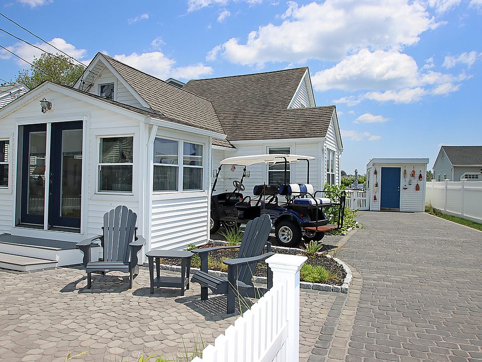 This FULLY FURNISHED seasonal cottage offers all the cozy beach vibes you've been looking for. Pull into the paver stone driveway with room for multiple vehicles, golf carts, or beach cruisers. A shed at the end of the driveway provides easy storage for all your beach gear. Step into the beautifully manicured, fully fenced backyard complete with a paver stone patio, open lawn for play or entertaining, and a private deck ideal for bonfires. Rinse off after the beach at the outdoor shower and enter through the side door into a functional eat-in kitchen with all essential appliances and recessed lighting, or walk up the front steps to a welcoming, bright entryway that opens into the main living space. The living room features cathedral ceilings, an electric fireplace, and a mounted picture frame flat-screen TV-creating a cozy spot to unwind after a day at the beach. The primary bedroom is on the main level, with two flexible bedrooms upstairs for family, guests, or a home office. Located in the desirable Chalker Beach Association, just steps from the sand and shoreline fun, this home blends comfort, character, and coastal charm. The beach community amenities include private beach access, two clubhouses available for special events, a park and a basketball court. There are many ongoing summer activities for families and members such as arts and crafts on the beach and 4th of July golf cart parades. Don't forget the infamous Chalker Beach Store for sandwiches, snacks & coffee! This is a seasonal property.