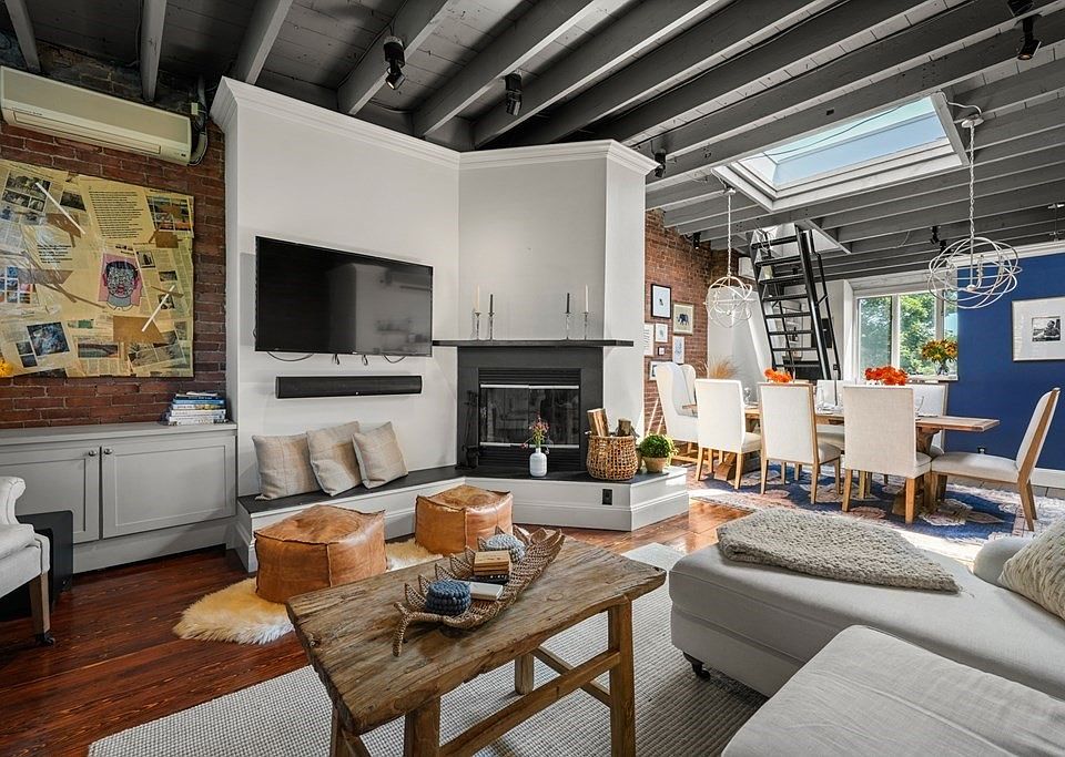 Welcome to this penthouse duplex with ‘wow factor’ that gracefully mixes South End character and stunning architectural details. Upper level with soaring ceilings and exposed brick & beam details is flanked by two walls of oversized windows. The living space with a cozy fireplace is well proportioned to maximize seating. The designated dining area centered below a skylight comfortably fits a dining table for 8+, perfect for dinner parties. Well laid out kitchen offers plenty of cabinet space and a separate bar area. Unique to this home are two true and oversized bedrooms each with en-suites on the sleeping level. Primary features bay windows, builtins, custom carpet and ornamental original fireplace. Second bed also has builtins and new hardwood floors. Roof replaced in 2020 and comes with roof deck plans approved by Landmarks Commission. Nestled on the border of Back Bay and the South End, 96 Chandler is in the midst of the city's best restaurants, shops, parks, playground and more.