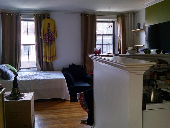 NO FEE AND FIRST MONTH'S RENT IS FREE. Sunsplashed and spacious third floor Charles St studio with polished hardwood floors, decorative non working fireplace, good closet space and heat and hot water included. Avail immediately. A cat is ok