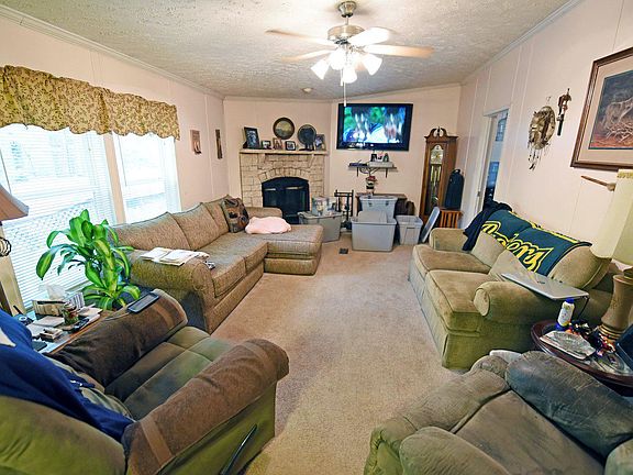 RANCH STYLE LIVING! Over 1900 Square Feet (28x68) 2005 Clayton Home with Permanent Foundation. HUGE Rocking Chair Front Porch. Three Bedrooms, Two Baths. Spacious Layout. Living Room with Wood Burning Fireplace is Open to the Generous Kitchen with Center Island. Lots of Counter-Top Space & Cabinetry! Plenty of Room to Entertain your Family at the Dining Area & Second Family Room. Master Bedroom with Double Vanities in Master Bath, Soaking Tub & Separate Shower. Two Car Carport with Attached Storage Shed + 12x16 Storage Shed. NO Restrictions & EZ Care Half Acre Lot. Paved Access! Please Excuse the Packing Mess. Home does need some TLC but Huge Potential and a Very Large Home for the Money! Close to Town & Meeks Park at the Kayak Launch to the Nottely River, Playground & Walking Trails! Check out the Video.