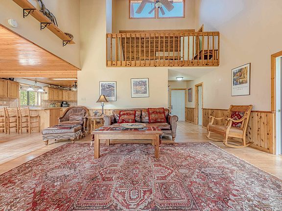 Get ready to create mountain memories with the entire family with 96 Cimarron Trail. With 5 spacious bedrooms, 4 full bathrooms, a half bath, and a bonus den, this home has room for everyone, plus more! Situated on .94 acres with a paved circle driveway, this home can be enjoyed inside and out with a yard that’s perfect for outdoor living and games, large front and rear decks, AND the outdoor hot tub! Inside, relax in the open living area featuring vaulted ceilings, hardwood floors and a wood burning fireplace surrounded by stacked stone. The adjacent kitchen has tile flooring and tongue and groove wood ceilings with a dining area leading to the back deck. Down the hall is the second living area / game room with hardwood floors and ceilings, a fireplace, pool table and a wet bar. The primary bedroom is on the main floor with an attached sunroom and an ensuite bath with a soaking tub and shower. The upstairs features a loft, two full baths, three guest bedrooms and a bunk room (fifth bedroom) that is accessed through the fourth bedroom. 96 Cimarron Trail comes fully furnished and is ready to be your family’s favorite getaway, or a turnkey vacation rental opportunity.
