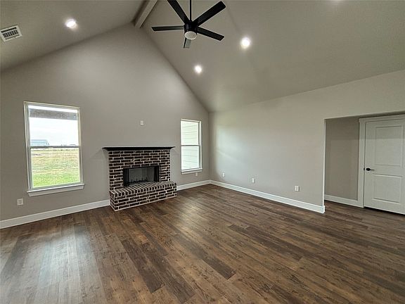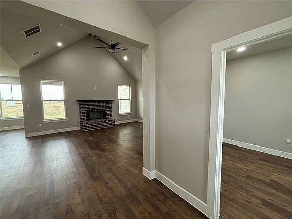 Charming custom-built home on 1.4 acres! This 3-bed, 2-bath gem includes a flex room for an office or formal dining. Open floor plan features a stone fireplace, luxury vinyl plank flooring, and vaulted ceilings. The kitchen boasts an electric stove, upgraded appliances, granite bar, and a hidden walk-in pantry. A large laundry room adds extra convenience. The luxurious primary suite with dual vanities, walk-in shower, and an oversized closet. Enjoy the spacious backyard and a 26x24 oversized garage perfect for trucks or toys. Quiet location with room to roam—poultry and livestock is allowed!