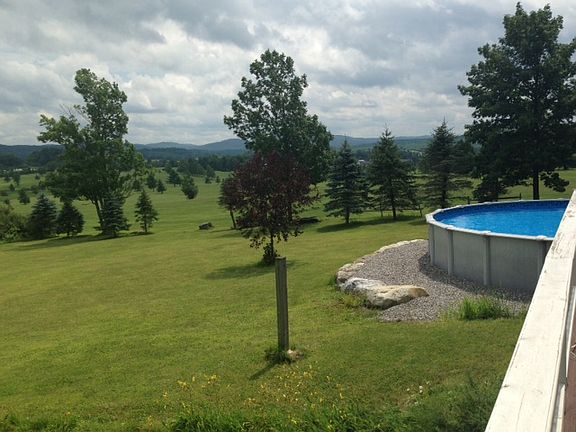 Mountain views, peaceful 18-hole golf course setting. 4br 2.5ba colonial on 5 acres. Above ground pool, wrap around porch/deck, attached 2car garage. Two story foyer, island/eat-in kitchen, formal dining, 1st floor laundry. Master suite, partially finished walk out basement. Schedule a showing today and move in before the new school year!