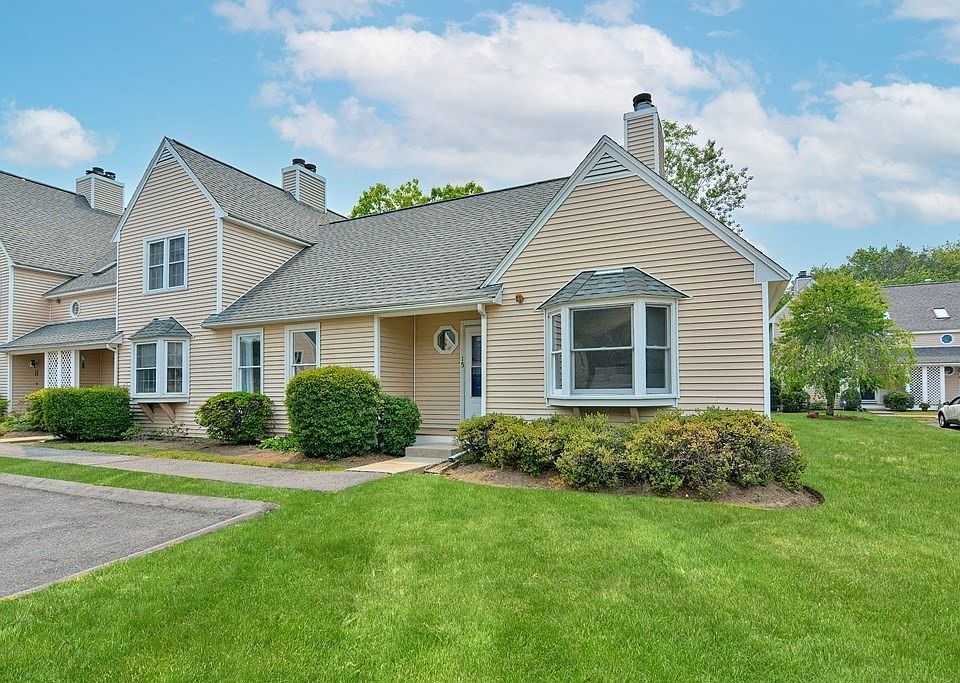 This stylish renovated ranch style condo offers a convenient one-floor living experience with a modern touch. The sought-after white kitchen exudes elegance and modernity. Brand-new stainless-steel appliances and stylish backsplash complement the overall aesthetics. The Living Room & Dining area are designed with cathedral ceilings, adding a sense of grandeur and openness to the space. A central fireplace acts as a focal point, creating a cozy and inviting atmosphere. The Dining Room has a French door leading to private deck. The condo includes two bedrooms both with walk in closets plus a beautifully renovated bathroom, complete with a luxurious soaking tub. The finished basement boasts an office space with built-in shelves, along with a bonus room for versatility. Ample storage is available in the unfinished part of the basement. Overall, this condo provides a contemporary living space with desirable features and plenty of storage options. OPEN HOUSE SUNDAY 12-2 p.m.