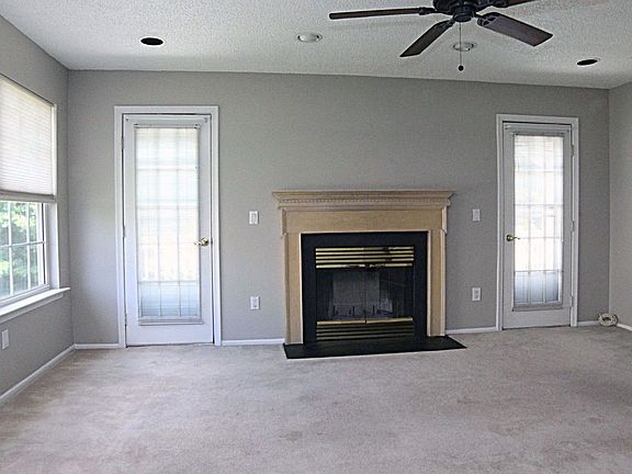 - RoomLivingRoomFeatures: French Doors, Fireplace - Woodburning, Floor - W/W Carpet