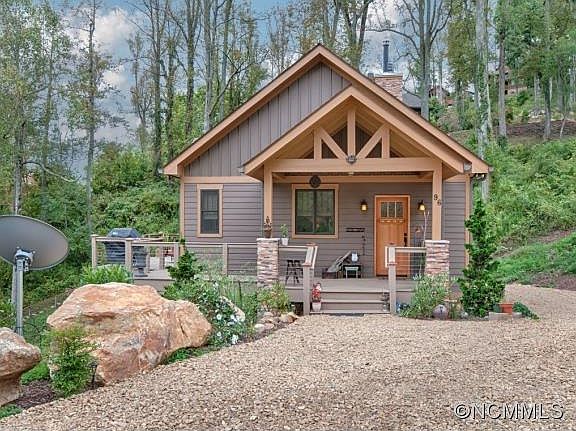 Sunny contemporary Arts & Crafts, Green-built, 5-star energy home in gated eco-friendly Crest Mountain community. Main level living, open floor plan, custom finishes, gourmet kitchen, wood burning fireplace and stove, hardwood floors and pocket doors. Build a garage to your taste. Wrap-around deck offers long-range, year-round mountain views including the Biltmore Estate. A masterpiece of mountain design just a quick 5 miles from downtown.